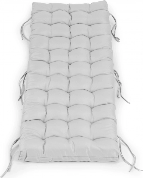 Universel grå hynde til haveliggestol eller stol, der giver maksimal komfort og stil til dit uderum. Det holdbare materiale er vandafvisende og vejrbestandigt, så det passer perfekt til terrasse, altan og have. Takket være praktiske fastgørelsesremme bliver den sikkert på plads og passer til de fleste almindelige modeller af liggestole, stole og bænke.