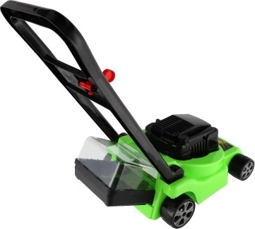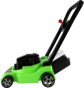 Håndtaget i 60 cm højde giver en behagelig greb for børn fra 3 år. Det realistiske udseende, hjulene for jævn bevægelse og den enkle betjening gør plæneklipperen til et fantastisk legetøj til kreativ og aktiv leg.