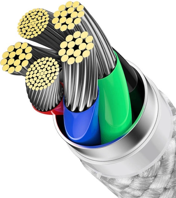 Tekstilt flet, forstærkede stik og ABS-elementer beskytter kablet mod brud og slid. Designet til daglig brug derhjemme og på farten.