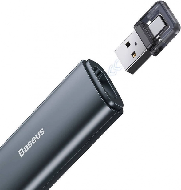 Vi præsenterer Baseus fjernbetjening til præsentationer, der især udmærker sig ved nem og intuitiv betjening, hvilket lader dig fokusere fuldt ud på præsentationens indhold. Takket være forbindelsesmulighederne via USB og USB-C kan den let bruges med de fleste computere uden behov for yderligere adaptere.