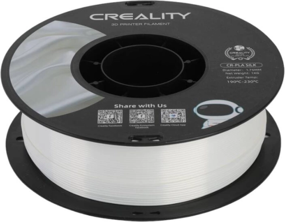 Creality CR‑PLA Silk i hvid skaber modeller med en perlemorsglat overflade uden behov for efterpolering. Takket være omhyggelig oprulning er udskrivningen uden sammenfiltring og med konstant materialefremføring. Ideel til figurer, dekorationer, gaver og smykker, hvor du får et premium udseende og nem efterbehandling.