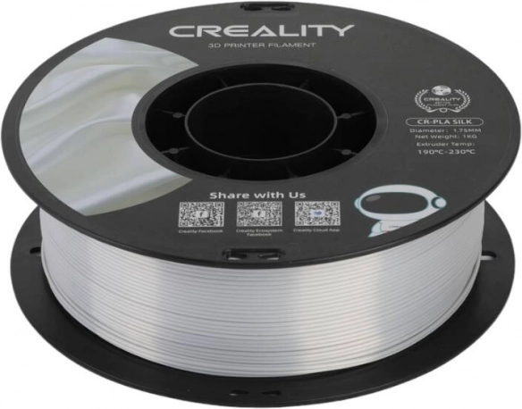 Den glansfulde Creality CR-PLA Silk i sølv giver en metalisk, elegant glans til figurer, dekorationer og smykker. Den tilbyder hurtig og jævn printning op til 100 mm/s, modstandsdygtighed mod sammenfiltring, lav krympning og er fremstillet af miljøvenlig PLA. Kompatibel med de fleste CREALITY-printere.