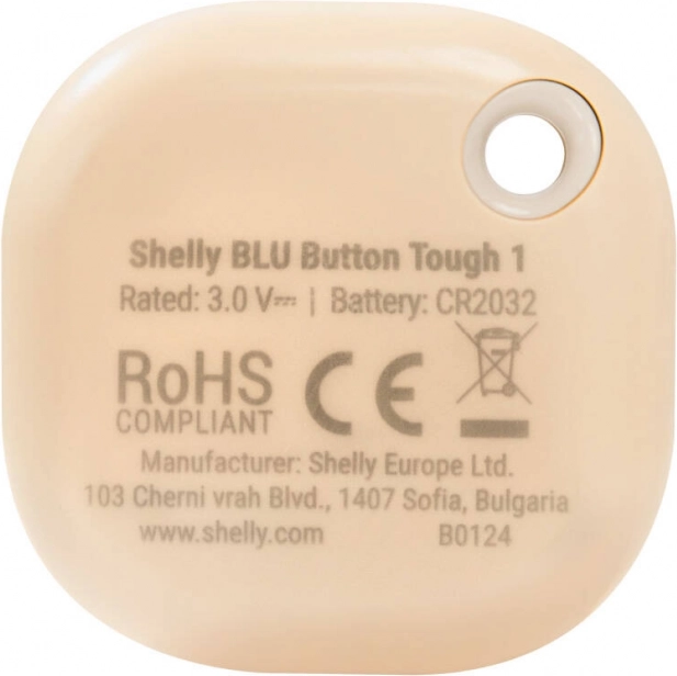 Styr dit hjem med et enkelt tryk. Shelly BLU Tough 1 er en smart knap med Bluetooth 4.2, der fungerer pålideligt i krævende forhold. Den er designet til daglig brug – har robust konstruktion, kompakte mål 42 × 42 × 13 mm og vejer kun 15 g. CR2032-batteriet er inkluderet og giver drift i op til 2 år.