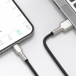 BASEUS Cafule er et pålideligt kabel til Apple-enheder med Lightning-stik, som forkorter opladningstiden og gør datahåndtering hurtigere. Med strøm op til 2,4 A fylder det hurtigt din iPhone med energi, mens præcise metalstik og temperaturstyring beskytter både batteri og enhedens port. Nylonflet og forstærket konstruktion tåler daglig bøjning og hyppig brug.
