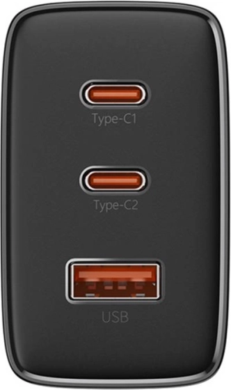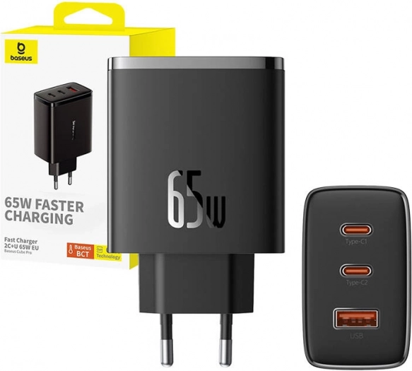 Vægoplader Baseus OS-Cube Pro 65W, 2× USB‑C + USB‑A, sort