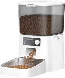 Oneisall Pro er en smart automatisk foderautomat til katte og små hunde, som giver dig ro i sindet og dit kæledyr regelmæssige og præcise portioner. Takket være den trådløse strømfunktion forbliver fodringen stabil, selv ved strømafbrydelser. Beholderen med en kapacitet på ca. 1,2 kg tørfoder og de kompakte mål gør den nem at placere i ethvert hjem.