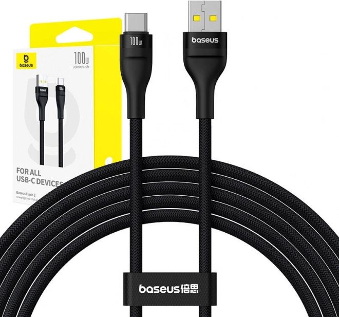 BASEUS Flash 2 opladnings- og datakabel USB-A til USB-C 100 W, 2 m, sort