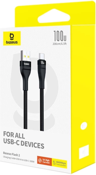 BASEUS Flash 2-kablet er designet til krævende brugere, der kræver maksimal ydeevne og holdbarhed. Det understøtter hurtig opladning op til 100 W og overfører data problemfrit med hastigheder op til 480 Mb/s. Det er et fremragende valg til smartphones, tablets og laptops med USB‑C.