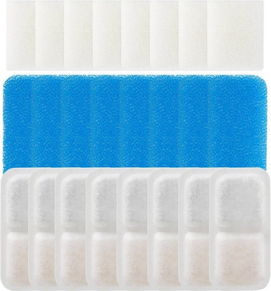 Nem brug og vedligeholdelse: før første brug nedsænk filteret i vand i 2 minutter. For at bevare en høj filtreringseffektivitet anbefaler vi udskiftning mindst hver 4. uge, eventuelt oftere afhængigt af fontænens belastning og vandkvaliteten.