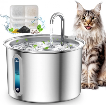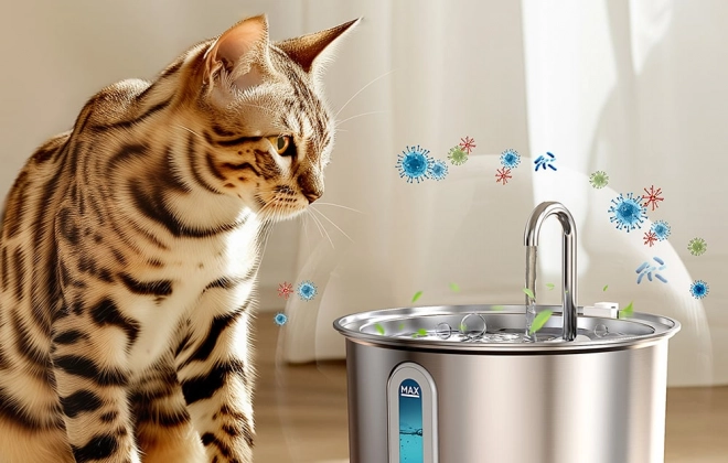 Takket være brugen af rustfrit stål 316 forbliver vandet uberørt og fontænen er nem at rengøre. Alle dele kan vaskes i opvaskemaskinen, hvilket letter vedligeholdelsen. Ydermere kan du holde øje med vandstanden gennem et gennemsigtigt vindue med LED-belysning.