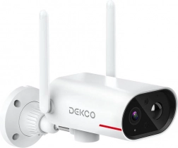 Avanceret PIR‑detektion genkender bevægelse fra personer, dyr og køretøjer og reducerer falske alarmer. Tovejskommunikation lader dig tale med besøgende eller skræmme ubudne gæster væk. Optagelser gemmes på microSD (op til 128 GB) eller i DEKCO‑cloud, og DEKCO‑appen giver live‑visning, notifikationer og fjernstyring hvor som helst.