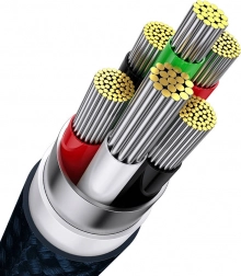 Takket være nylonflet og forstærket kabelafslutning behøver du ikke bekymre dig om mekaniske skader. En særlig lysindikator informerer dig om opladningstilstanden, og sikkerheden sikres af Power Split-teknologien, som fordeler energien jævnt og beskytter enhederne mod overophedning.