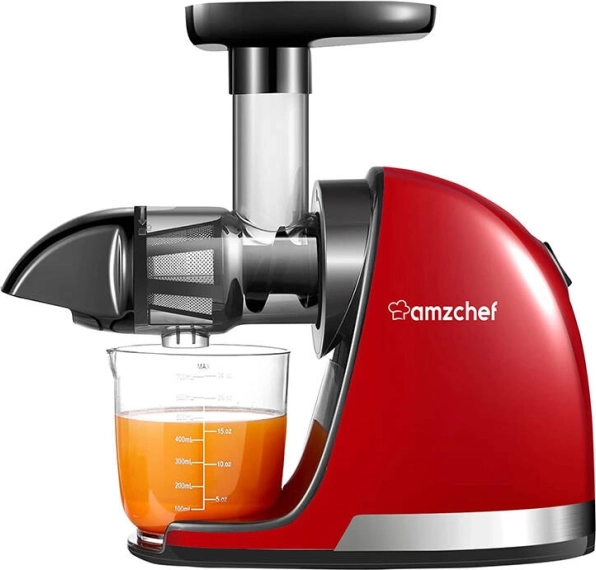 AMZCHEF saftpresseren er udstyret med en innovativ 7-trins snegl, som muliggør brud, hakning, presning, knusning, separation, maling og ekstraktion. Den er særdeles effektiv til at adskille saft fra pulp, hvilket betyder færre rester og flere vitaminer.