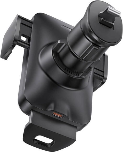 Det elegante BASEUS-beslag kombinerer bekvemmeligheden ved trådløs opladning med sikker montering af telefonen i ventilationsristen. Den tyngdekraftsbaserede mekanisme tilpasser automatisk kloens bredde til din telefon, silikoneindlæg beskytter enheden, og den robuste ABS-konstruktion sikrer stabilitet selv ved hårde opbremsninger.