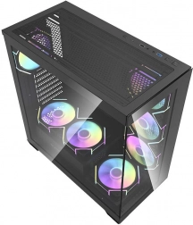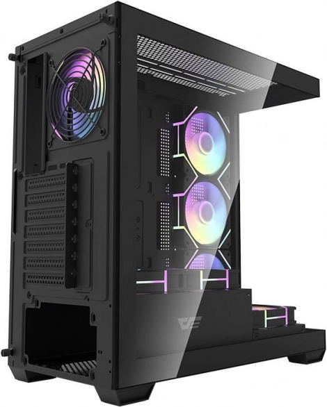 Darkflash DS900 er et moderne midi tower designet til krævende gamere og content‑skabere. Det panoramiske chassis med dobbelt hærdet glas giver frit udsyn til komponenter og ARGB-belysning, mens den robuste konstruktion af 0,5 mm SPCC sikrer holdbarhed og stabilitet. Medfølger 7× 120 mm ARGB-blæser for øjeblikkeligt effektiv køling og markant æstetik.