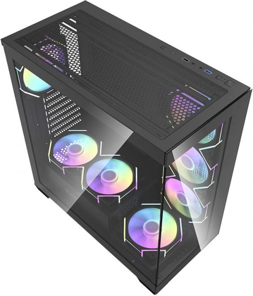 Uden A‑søjle og med to store paneler af hærdet glas træder komponenter og ARGB-effekter tydeligt frem. Æstetik uden kompromiser og nem fremvisning af din build.