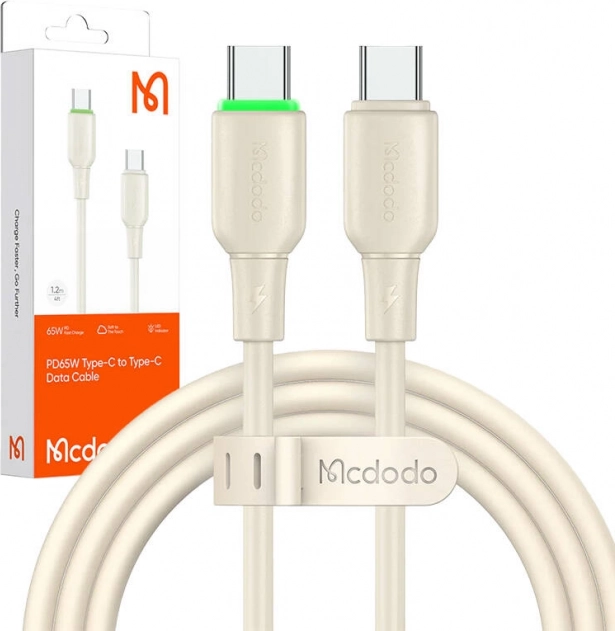 Mcdodo silikonekabel USB‑C til USB‑C 65 W, 1,2 m, beige