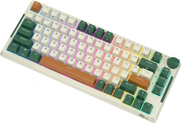 Royal Kludge RKH81 kombinerer et kompakt 75% layout med smart udstyr til daglig produktivitet og gaming. Du får 3 tilslutningsmåder (USB‑C, 2,4 GHz, Bluetooth til op til 3 enheder), hotswap-sokkel til nem udskiftning af kontakter og RGB-belysning med 14 tilstande. Den robuste konstruktion dæmper støj, og skridsikre fødder sikrer stabilitet på bordet.