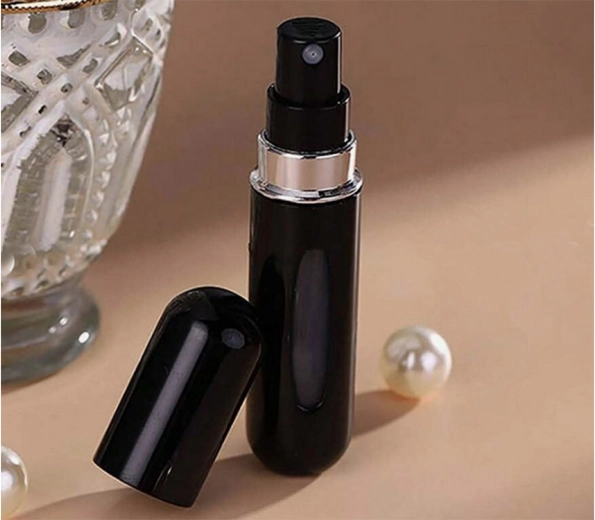 Elegant og kompakt rejseforstøver til parfume på 5 ml i slidstærkt aluminium. Med det gennemsigtige vindue har du altid overblik over mængden, nem påfyldning fra bunden og sikker transport af duften i lomme eller håndtaske. Let, genopfyldelig og ideel til rejser og daglig brug.