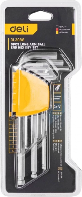 Det lange sæt af unbrakonøgler fra Deli Tools indeholder 9 dele fremstillet af krom-vanadiumstål. De er ideelle til både professionel og hjemmebrug og tilbyder korrosionsbestandighed og modstandsdygtighed over for høje temperaturer.