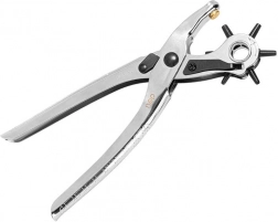 Alsidig hultang med roterende tårn, der gør det let at vælge ønsket huldiameter 2 / 2,5 / 3 / 3,5 / 4 / 4,5 mm. Ideel til tilpasning af læderbælter, tasker, halsbånd samt tekstiler og tyndere materialer. Den ergonomiske konstruktion sikrer behagelig og præcis hulning uden flossede kanter.
