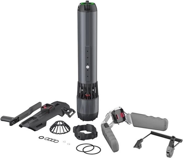 Takket være quick-mount-systemet kan scooteren gøres klar til brug på et øjeblik. Der findes en række adaptere til forskellige monteringsmetoder. Scooteren med aluminiumscover når hastigheder op til 1,4 m/s og muliggør dyk ned til 60 m.
