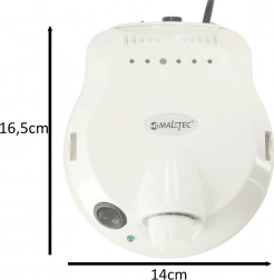 Fræserens dimensioner: 14 cm x 16,5 cm x 8,8 cm