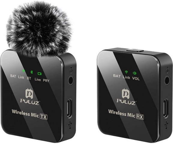 Den trådløse lavaliermikrofon Puluz 1 TX + 1 RX er designet til dem, der vil løfte kvaliteten af deres optagelser til et højere niveau. Med én modtager og én sender leverer den krystalklar lyd takket være omni-retningsbestemt mikrofonteknologi og støjreduktion.