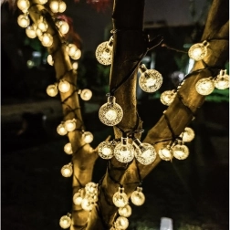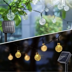 Solcelle kæden indeholder 100 dekorative kugler af høj kvalitet polystyren med en fin boble effekt, som skaber en behagelig lys atmosfære.