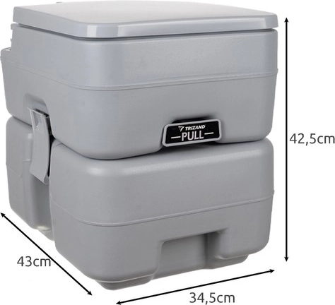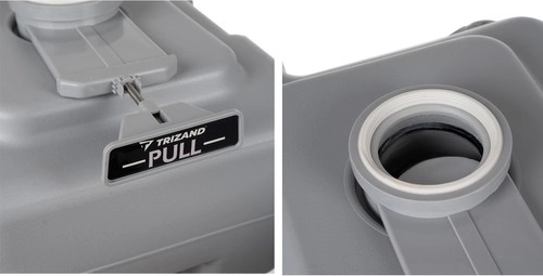 Leder du efter en praktisk og hygiejnisk løsning til turen og uden for alfarvej? Det bærbare TRIZAND-toilet kombinerer kompakte mål, lav vægt og høj tankkapacitet. Den øverste del med 12 l vandtank og manuel pumpe til skylning muliggør gentagen brug uden vandtilslutning. Den nederste 20 l affaldstank er hermetisk lukket og udstyret med en stor udløbsåbning med skruelåg for ren og hurtig tømning.