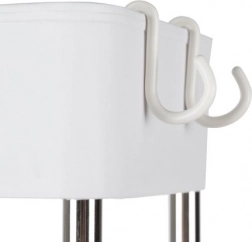 Kombinationen af præcist pasformede samlinger i rustfrit stål og kvalitetsPP sikrer stabilitet og lang levetid. De perforerede hyldebunde med blomstermotiv forskønner ikke kun indretningen, men forbedrer også fugtafvindingen. Fire drejehjul muliggør smidig flytning selv i trange områder, og praktiske kroge på siderne holder håndklæder, svampe eller børster lige ved hånden.