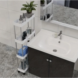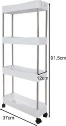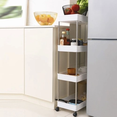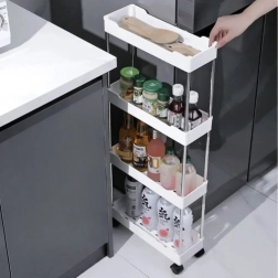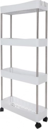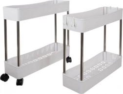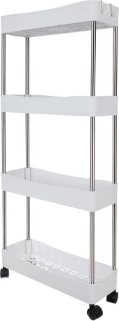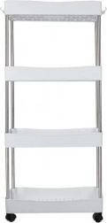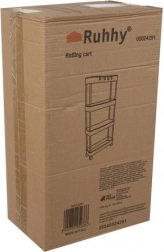 Den mobile hyldevogn RUHHY er en universel løsning til pladsbesparelse i smalle mellemrum og almindelige zoner i hjemmet. Takket være den modulære konstruktion kan du nemt tilpasse antal niveauer efter behov og bruge den i badeværelset til kosmetik og rengøringsmidler, i køkkenet til krydderier og flasker, på kontoret til dokumenter eller i vaskerummet til detergenter.