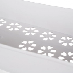 Perforeret bund forbedrer luftcirkulationen og afleder fugt. Sidekroge giver plads til håndklæder og små accessories.
