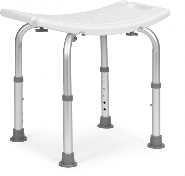 Komfortabel brusestol med en robust aluminiumsramme og sæde af holdbar polyethylen giver tryghed ved den daglige hygiejne. Det teksturerede sæde med afløbshuller forhindrer at man glider og leder vandet hurtigt væk, mens skridsikre gummifødder holder stolen stabil selv på våde overflader.
