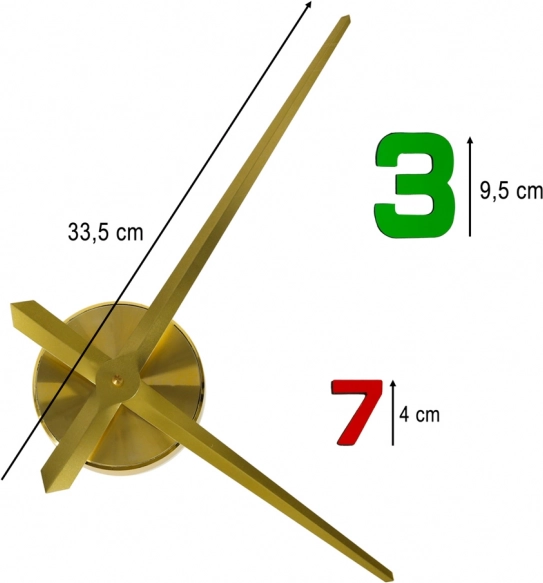 Kontrasten mellem de gyldne visere og de farvede markeringer skaber en iøjnefaldende dekoration, der passer til stue, soveværelse og kontor. Uret drives af et almindeligt AA-batteri (medfølger ikke), så du kan placere det næsten hvor som helst.