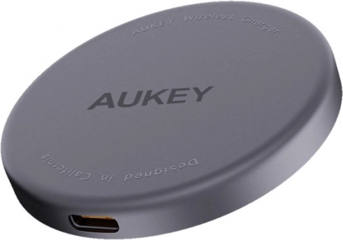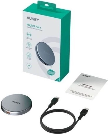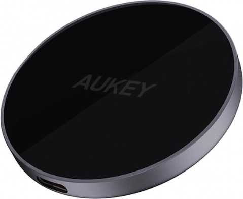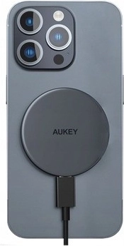 Magnetisk trådløs oplader AUKEY MagFusion med Qi2 og 15 W effekt. Stærk N52‑magnet, USB‑C, premium‑materialer og avanceret beskyttelse. Sort.