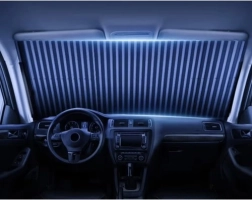 Rullegardinet til forruden slipper ikke solens stråler igennem og reducerer bilens overophedning. Det beskytter interiøret og forkorter den tid, der er nødvendig for at køle bilen ned.