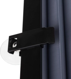 Installationen af rullegardinet er enkel og hurtig. Brug de medfølgende sugekopper, fastgør i den ene side af ruden, træk gardinet ud og fastgør i den modsatte side.