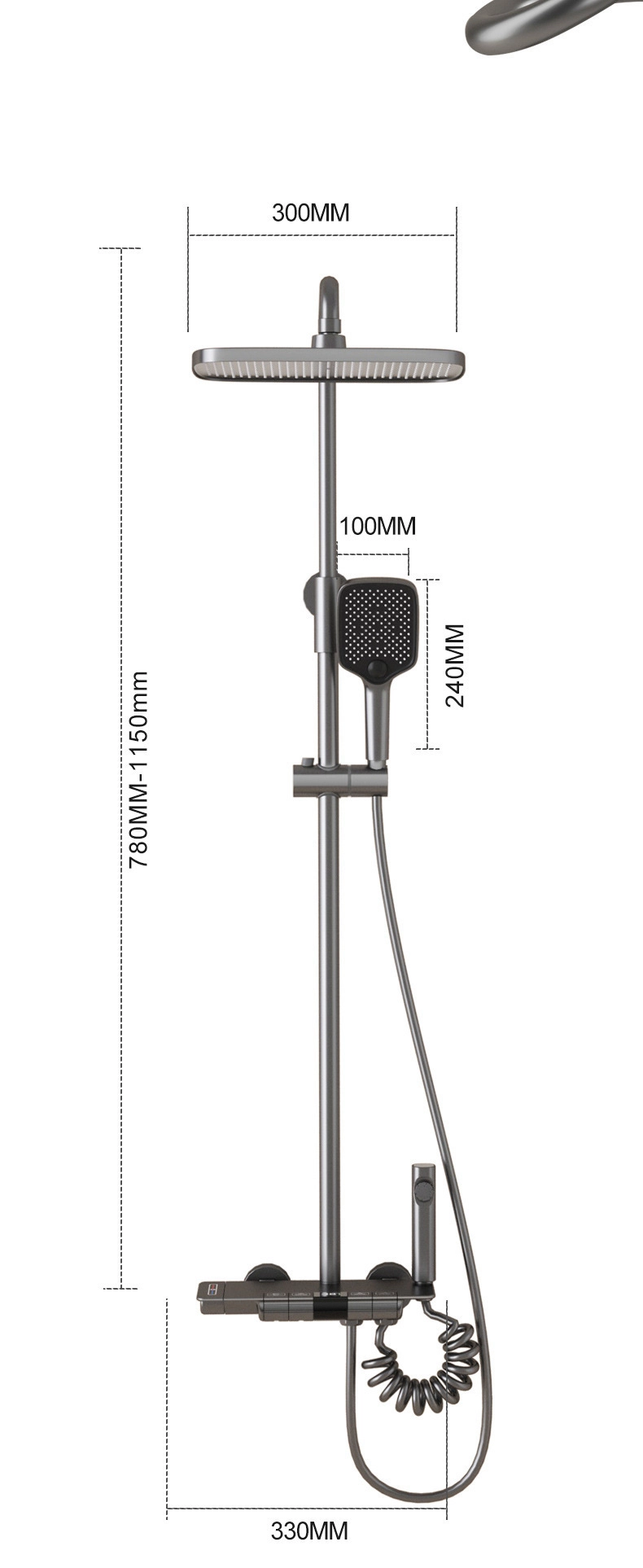 Det intelligente brusesæt tilbyder en luksuriøs bruseoplevelse med præcis temperaturstyring og nem betjening. Det passer perfekt til moderne badeværelser og tilfører både elegance og funktionalitet.