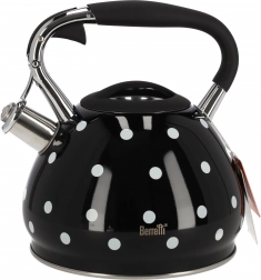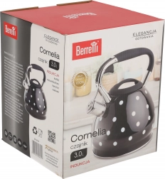 Berretti Cornelia 3L er en elegant kedel, der giver dit køkken et strejf af stil med sin sorte farve og hvide prikker. Med en kapacitet på 3 liter er den ideel til daglig brug, hvad enten det er til at koge te eller brygge kaffe.
