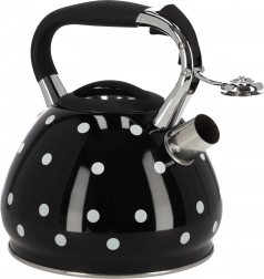 Den sorte kedel med hvide prikker imponerer med sit stilfulde og moderne design, som passer ind i ethvert køkken.
