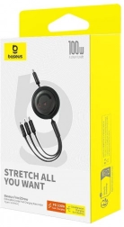 Det universelle BASEUS Free2Draw 3‑i‑1‑kabel kombinerer hurtig opladning op til 100 W, tre stik (USB‑C, Lightning, Micro USB) og en udtrækkelig konstruktion med 4 længder. Det oplader op til tre enheder samtidig og understøtter dataoverførsel på 480 Mb/s. Den kompakte opruller sparer plads, og en intelligent chip beskytter dine enheder.