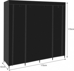 Tekstilgarderoben med dimensionerne 170 x 42 x 170 cm er den ideelle løsning til dem, der leder efter praktisk og bærbar opbevaringsplads. Takket være det lette materiale er den nem at flytte og passer perfekt til rum med begrænset plads.