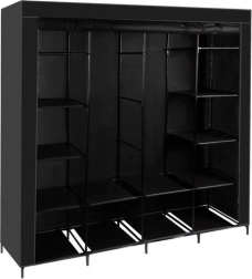 Garderoben indeholder i alt 14 hylder og 2 stænger til ophængning, som giver mulighed for effektiv organisering af dine ting. Lynlåslukning beskytter indholdet mod støv og fugt.