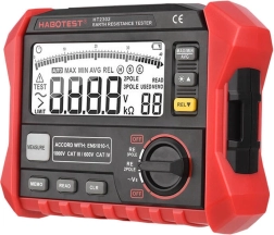 Habotest HT2302 jordmodstandstester er udstyret med en stor LCD-skærm for nem aflæsning af viste værdier. Måler i intervallet fra 0Ω til 4,00kΩ med nøjagtige og effektive resultater i enten topole- eller trefase-mode. Enheden er velegnet til kontrol af jordmodstand og elektrisk sikkerhed.