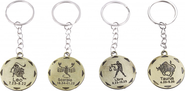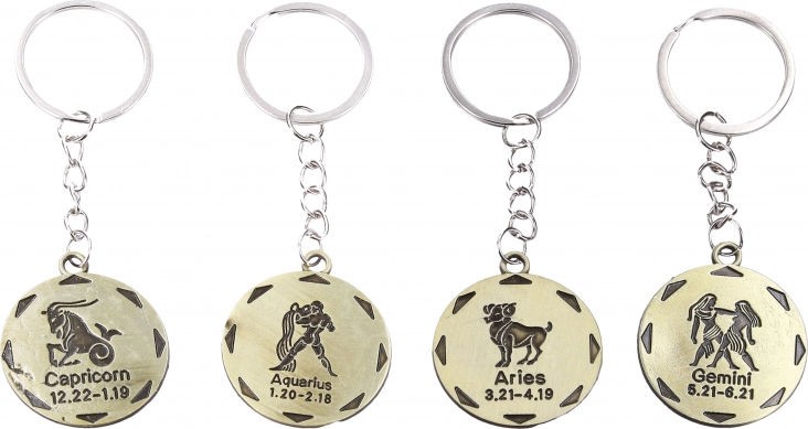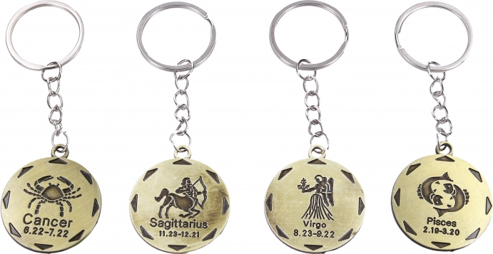 Stilfuld rund nøglering med motiv af stjernetegn. Vælg mellem 12 tegn – et ideelt tilbehør til nøgler, rygsæk og taske samt en fantastisk gaveidé.