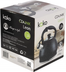 Kedlen KOKO LEON med en kapacitet på 1,8 l er et stilfuldt og funktionelt tilbehør til ethvert køkken. Denne kedel er fremstillet af materialer af høj kvalitet og har en iøjnefaldende overflade med marmoreffekt, som tilfører elegance til enhver indretning.