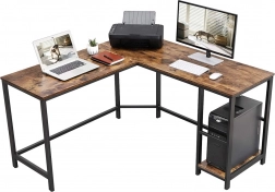 Dette hjørnecomputerskrivebord kombinerer smart pladsudnyttelse med et elegant industrielt look. Det tilbyder rigelig plads til skærm, laptop, printer og tilbehør, mens den stålramme og den kvalitetsplade i rustik brun sikrer lang levetid. Takket være de justerbare fødder kan du let udligne ujævnheder i gulvet og bevare stabiliteten under arbejdet.