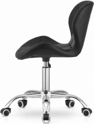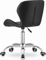 Denne moderne kontorstol passer perfekt til børneværelse, atelier, kontor og reception. Betrækket i slidstærkt økolæder med diskret quiltning virker elegant, er let at rengøre og bevarer sit udseende i længden. Den femarmede forkromede stjernefod med gummibelagte hjul sikrer stabilitet samt skånsom og stille kørsel på gulvet.