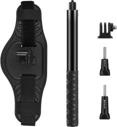 Forbedr dine actionvideoer uden at skulle holde kameraet i hånden. Det ergonomiske PULUZ-fotobælte med selfiestang fastgør sikkert opsætningen på kroppen, så du kan optage jævne og imponerende klip fra en attraktiv vinkel. Det universelle 1/4"-gevind gør det nemt at montere populære actionkameraer (DJI Action, GoPro, Insta360 – med passende adapter) og holdere til smartphones.